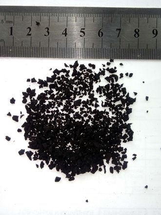 - Резиновая крошка черного цвета без включений металла и текстильного корда.